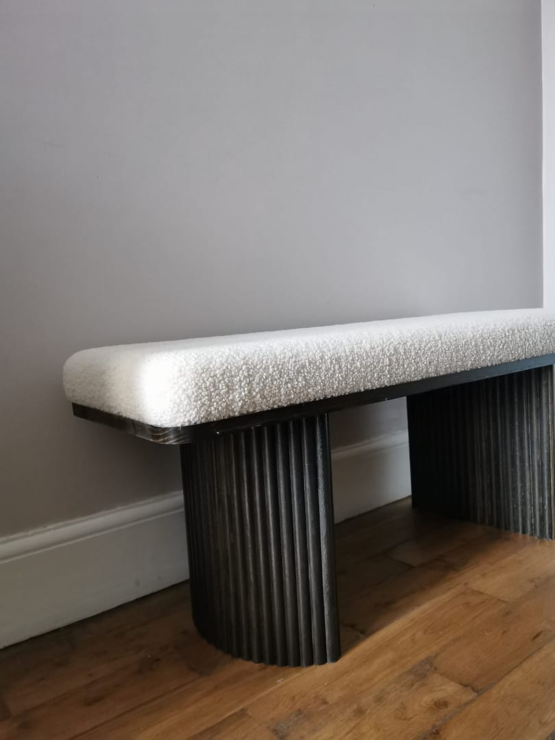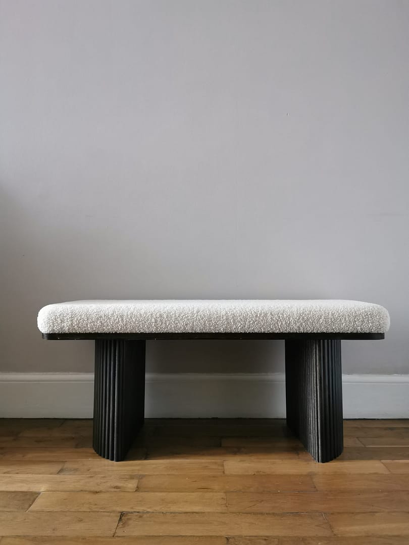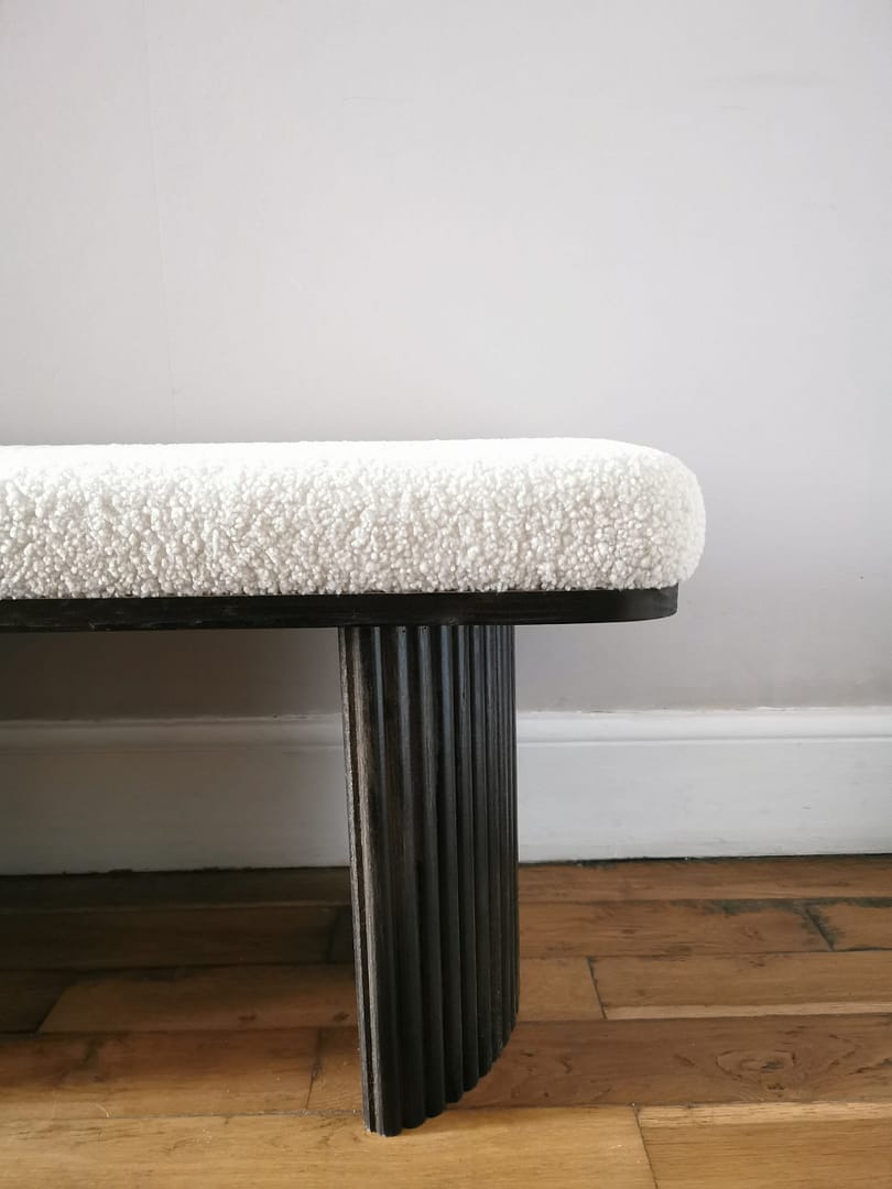 Disponibilité : Le banc Roger en tissu bouclette est disponible en quantité limitée.