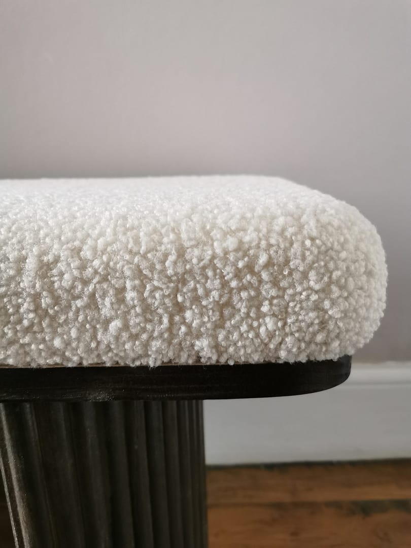 Mots clés: banc Roger, banc en tissu bouclette, décoration intérieure, tabouret naturel.