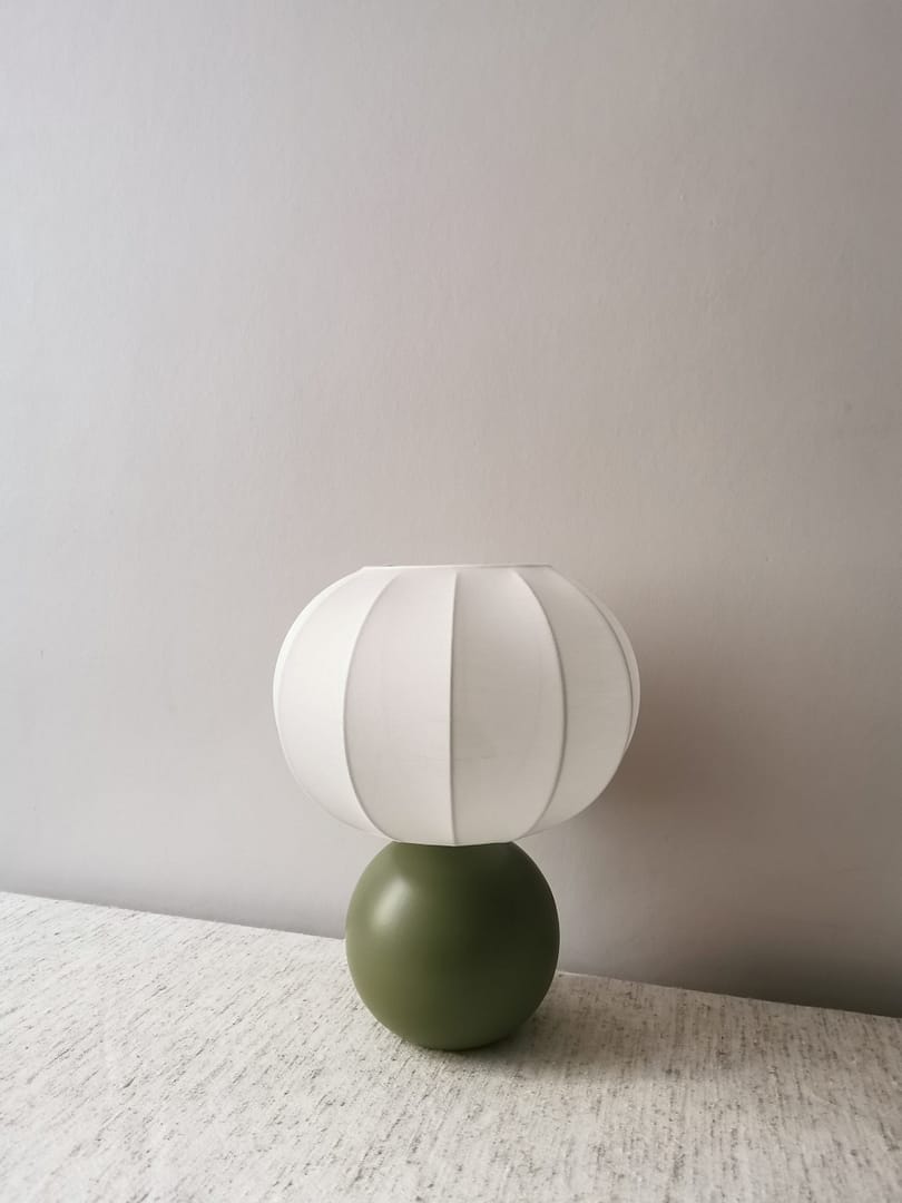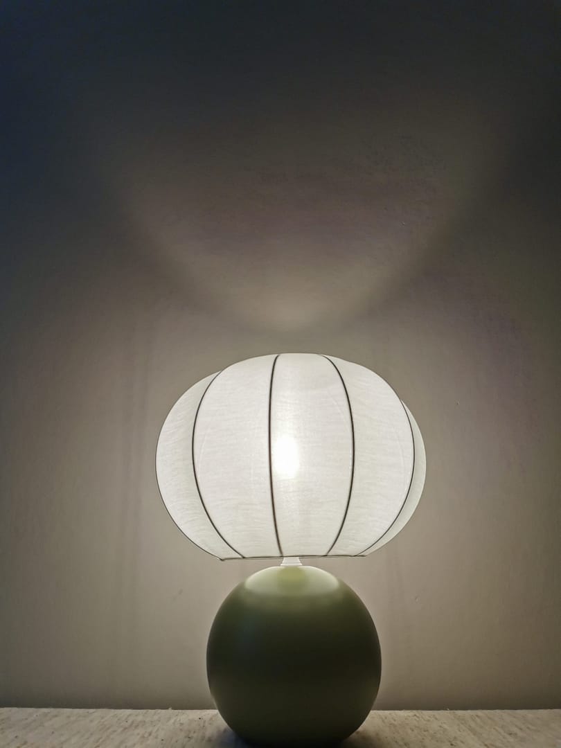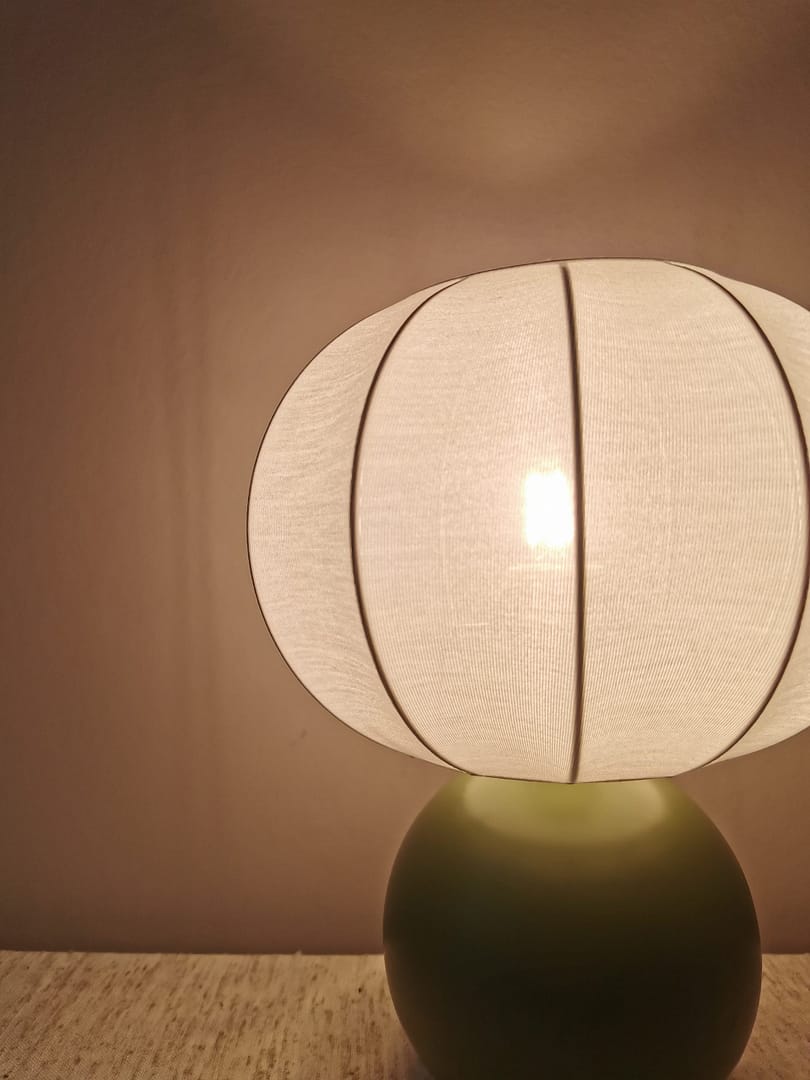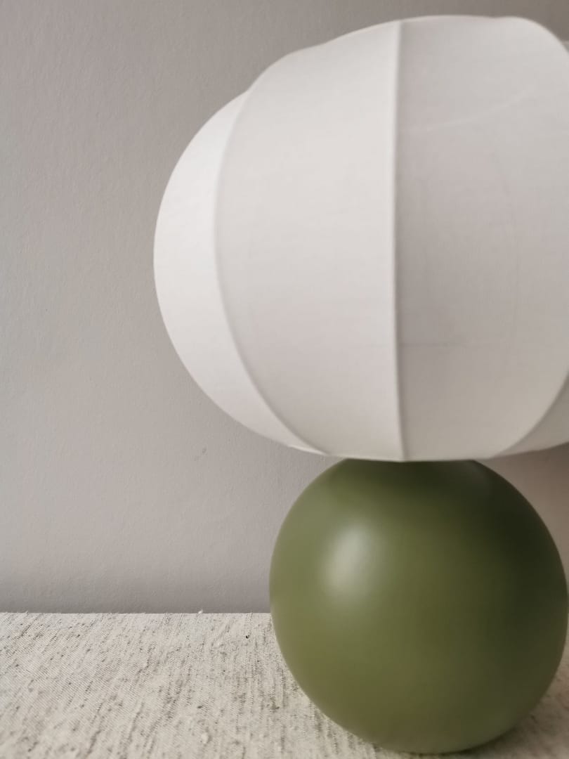 - Matériau : Structure en céramique vert kaki / Abat jour en voile de coton blanc